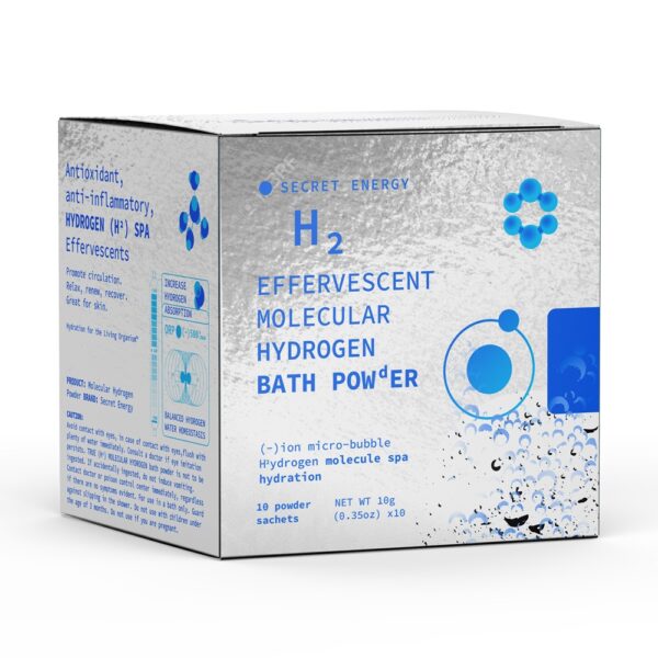 Molecular Hydrogen Bath Powder is the next advancement in hydrogen application and absorption. One sachet can bring 30 – 40 gallons of bath water to 1200 ppb of hydrogen concentration. This provides several benefits such as anti-inflammation, better circulation, skin treatment, and the numerous benefits found in molecular hydrogen research. Clinical studies have proven hydrogen-rich water (HRW) to have therapeutic and ergogenic effects.